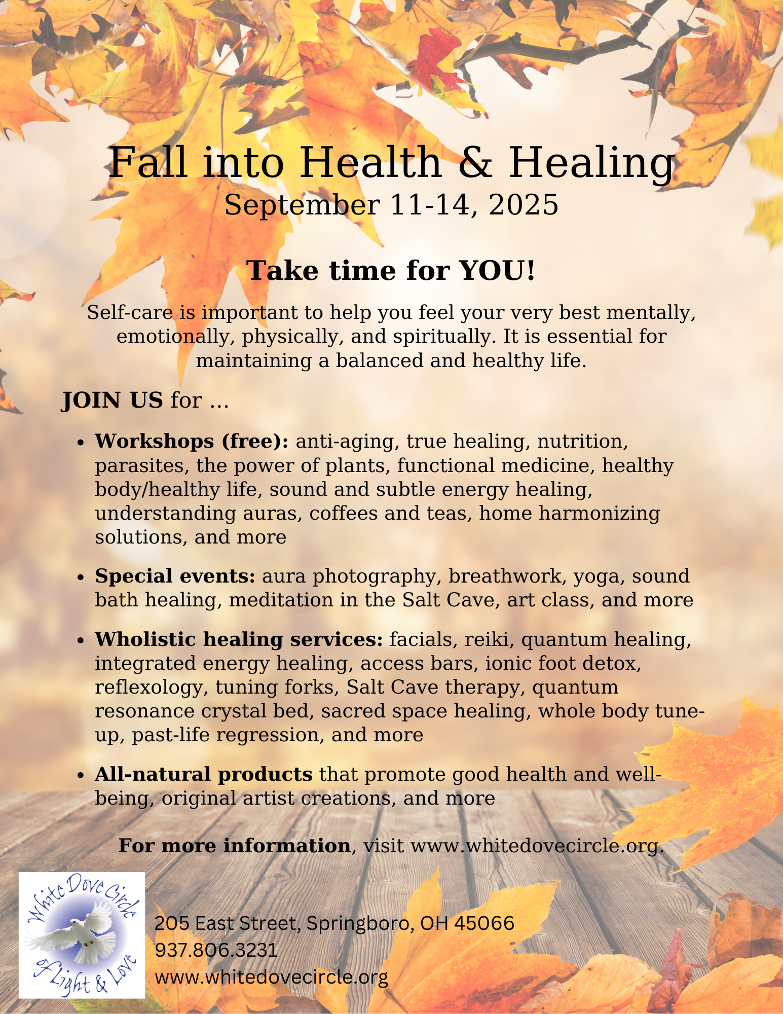 “I love going to White Dove Circle of Light and Love. Everyone is so welcoming and helpful. They are truly concerned about well being. They offer a variety of services. My kids and I love the salt cave. My daughter & I love the amethyst biomat as well. The gift shop is large and stocks a huge assortment of gift items, healing items, etc.” ~ A.SJ., OH
